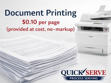 Document printing is available for $0.10 per page. This is our exact cost, and we do not profit from providing this service.