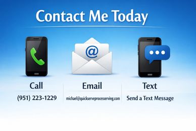 you can contact me by calling or texting (951) 223-1229. I can also be reached at via email at Michael@quickserveprocessserving.com